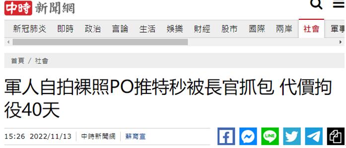 台媒:台灣一軍人自拍裸照傳上網被長官發現,被判拘役40天