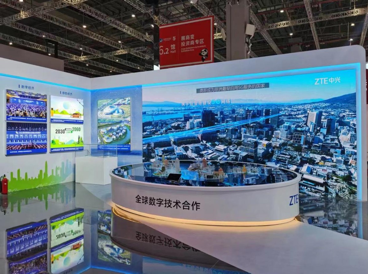 中興通訊在“成就專區”展示了中國企業致力於推動全球數字技術合作,共同連接成一條從中國出發、開放共享的數字絲綢之路的理念和實踐。中興通訊以電子沙盤的形式,通過在泰國、菲律賓、巴基斯坦、南非、意大利五個國家的典型數字技術合作案例展示,體現了中國企業在全球數字經濟、綠色經濟領域的對外開放成果。