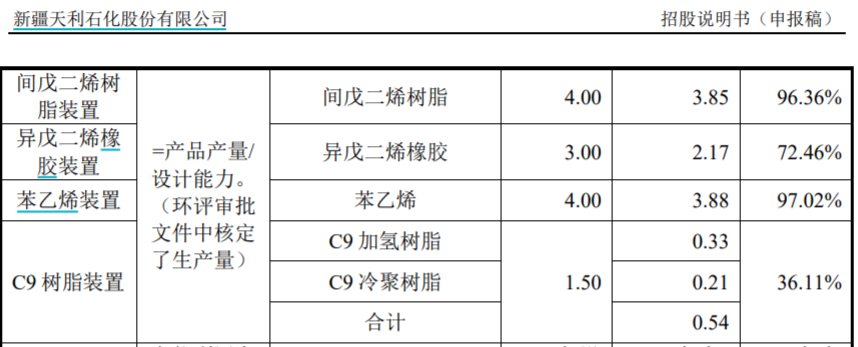 “3萬噸/年C9冷聚樹脂改擴建項目”是天利股份本次上市主要募投項目之一,對此招股書披露:本項目屬於改擴建項目,在現有1.5萬噸/年C9冷聚樹脂裝置基礎上將改擴建為3.0萬噸/年C9冷聚樹脂項目。但與此同時招股書也披露到,C9樹脂裝置的產能利用率非常低,2020年和2021年分別為33.92%和36.11%,也即2021年C9樹脂裝置的產能利用率也未見明顯提升。在此背景下,公司仍然要投入上億元擴建該產品生產規模,合理性令人質疑。