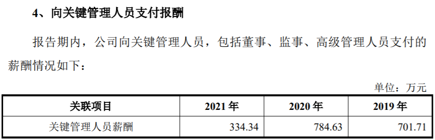值得關注的是,公司在2021年底發佈的招股書申報稿,其中披露在2021年上半年向關鍵管理人員支付報酬為180.93萬元,這也就意味着在2021年下半年向關鍵管理人員支付報酬僅為154萬元左右,相比上半年進一步減少。