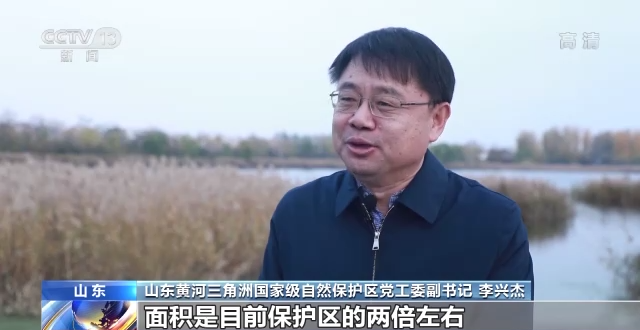 *山東黃河三角洲國家級自然保護區黨工委副書記 李興傑:*黃河口國家公園建成以後,面積是目前保護區的兩倍左右,這樣更有利於各種動植物的棲息繁衍。
