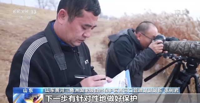 *山東黃河三角洲國家級自然保護區黃河口管理站副站長 張樹巖:*現在我們主要是監測記錄、遷徙期、野生鳥類的種羣數量,看看哪些生境更適合鳥類生息,下一步有針對性地做好保護,讓這些鳥兒在我們這裏生活得更加舒適,為黃河口國家公園建設提供數據支撐。