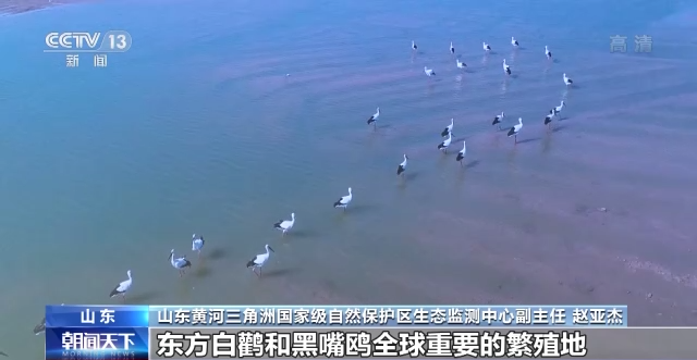 *山東黃河三角洲國家級自然保護區生態監測中心副主任 趙亞傑:*自然保護區的鳥類從建區初期的187種增加到了371種,有38種鳥類的種羣數量超過了全球總量的1%,這裏成了東方白鸛和黑嘴鷗全球重要的繁殖地。