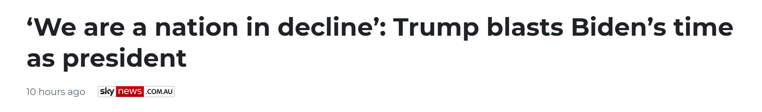 外媒:特朗普“炮轟”拜登任期表現,稱美國是“一個正在衰落的國家”