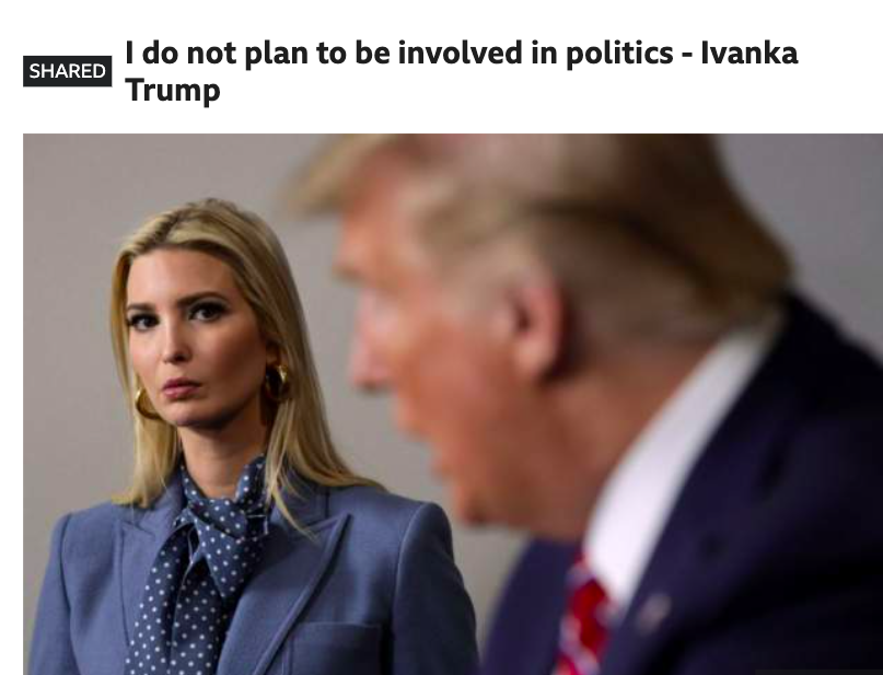 外媒:伊萬卡稱不參加父親2024年總統競選活動,“不打算參與政治”