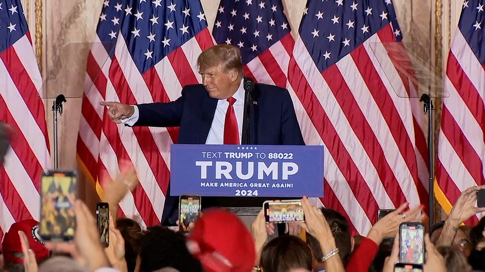 美國前總統特朗普當地時間15日晚在海湖莊園對支持者發表講話,正式宣佈參加2024年美國大選,美媒稱,這將是他第3次競選美國總統。
