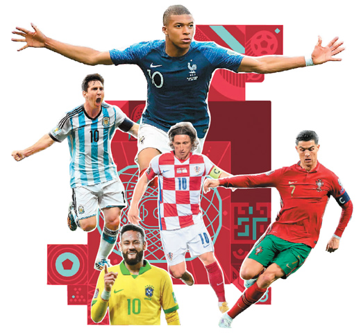 胸前“掛星”的傳統強隊自然是奪冠熱門。衞冕冠軍法國隊坐擁“金球先生”本澤馬和“第一身價”姆巴佩,陣容之豪華令人羨慕。但中場核心坎特和博格巴的缺席,不免讓“高盧雄雞”的衞冕之路荊棘叢生。巴西隊被各界視作頭號熱門,在球隊核心內馬爾與超級新星維尼修斯的帶領下,球隊無論是年齡結構還是陣容實力都正值黃金時期。只要避免“大熱必死”的魔咒和壓力,五星巴西就有能力走得更遠。