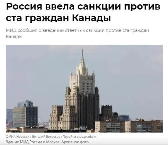 根據俄外交部的説法,“按照對等原則禁止100名加拿大公民入境(俄羅斯)。其中包括高級官員、商人、大量親班德拉派組織的積極分子、直接參與制定反俄方針的媒體和金融組織的活躍分子。”