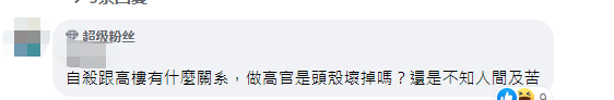 還有人表示,“自殺跟高樓有什麼關係,做高官是頭殼壞掉嗎?還是不知人間疾苦。”↓