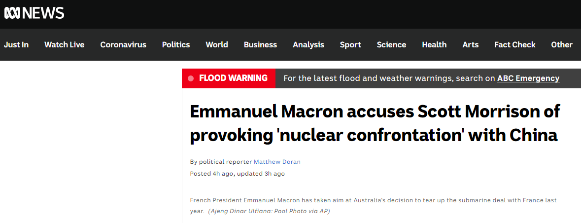澳媒:馬克龍就“奧庫斯協議”指責莫里森,稱其挑起與中國“核對抗”