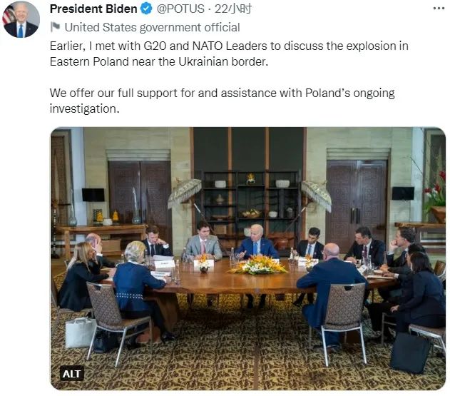 導彈路徑很可能超出了美國的心理預期,也就是飛到烏克蘭以外了。這件事一下子就讓美國站了起來,甚至影響了在印尼巴厘島舉行的G20峯會的既定議程。
