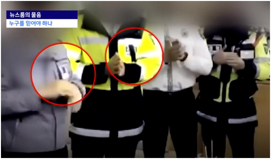 JTBC電視台16日獲取了拍攝於本月3日的相關視頻。視頻中,龍山警察署交通信息中心的警員們正在辦公室內為某位同事舉行生日派對。當時是事故發生後的第5天,正值國家哀悼期間。從視頻畫面來看,相關警員胸前還佩戴着黑色的哀悼絲帶,他們站在蛋糕前,拍手説笑着為同事慶生。一名警員還對過生日的同事開玩笑説:“脱下褲子吧!”話音未落,現場就有其他警員做出假裝解下褲腰帶的動作。