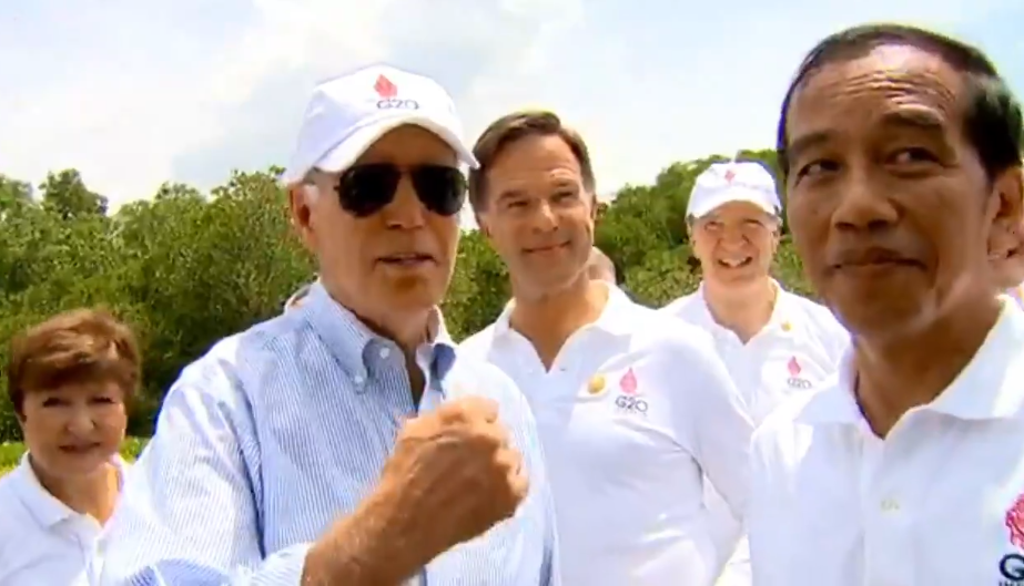 RT説,這位名叫尤里•舒爾莫夫的攝影記者來自俄羅斯第一頻道。根據現場視頻,當時,拜登正和印尼總統、荷蘭首相等領導人蔘加户外活動,看到這位攝影記者後,拜登徑直走上前互動。