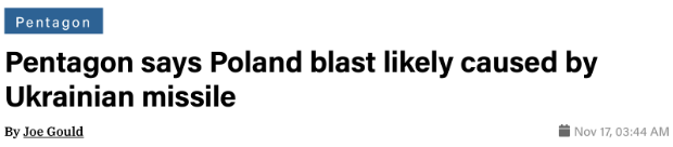 另一方面,據國防新聞網報道,在表態支持波蘭的初步評估的同時,奧斯汀還聲稱:“無論最終結論是什麼,全世界都知道,俄羅斯對這一事件負最終責任。”美國公共電視網聲稱,奧斯汀這麼説的理由是,“俄羅斯入侵了烏克蘭”。