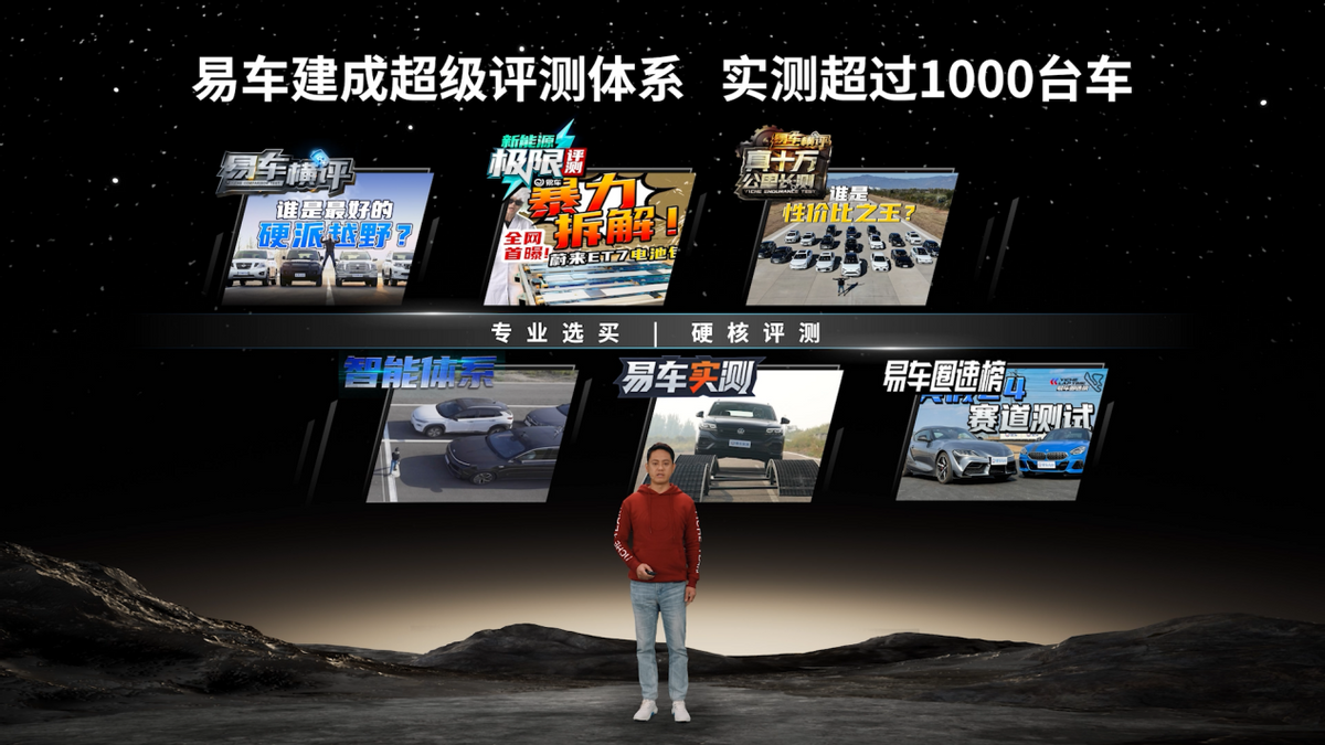 在專業內容上,易車建成超級評測體系,相繼上線《易車橫評》《真十萬公里長測》《易車實測》《易車圈速榜》《新能源極限測試》等節目,累計實測超過1000台車,12月份還將上線“智能評測體系”,針對智能汽車領域的智能座艙和輔助駕駛做真實道路情況下的評測。
