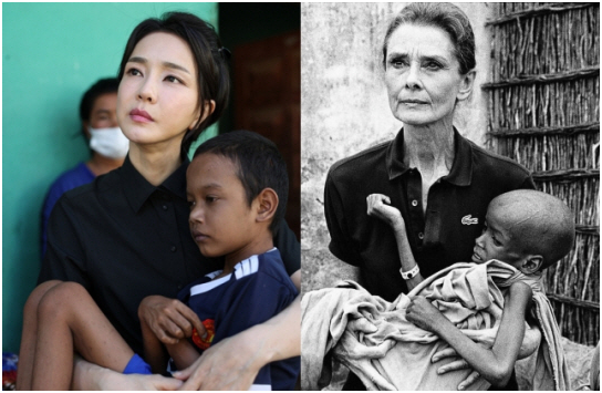 報道稱,金建希12日在柬埔寨金邊探望一名患有先天性心臟病的兒童,並與其進行合影。有韓國網民稱,金建希懷抱患兒的照片與著名影星奧黛麗·赫本1992年在索馬里拍攝的一張照片極為相似,認為金建希“模仿”和“抄襲”赫本。13日,多家韓媒還刊登了金建希手挽美國總統拜登胳膊的照片,引發爭議。有人認為,“第一夫人這樣做不合適”,也有韓國網民認為,“這顯示了韓美關係密切,沒什麼不妥”。