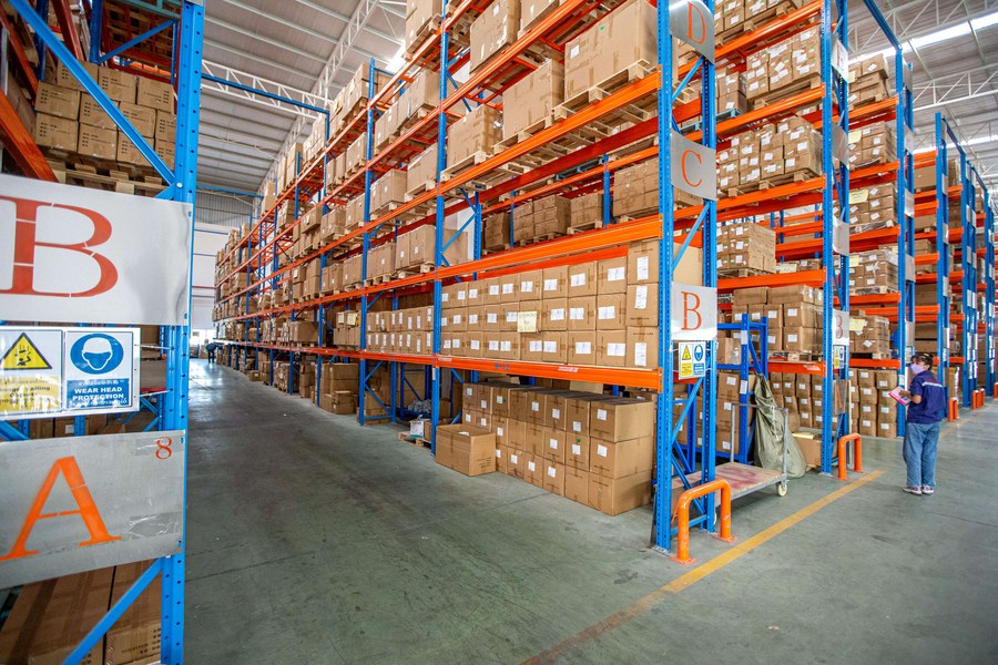 工作人員在泰中羅勇工業園的配件倉庫工作。(新華社記者王騰攝)
