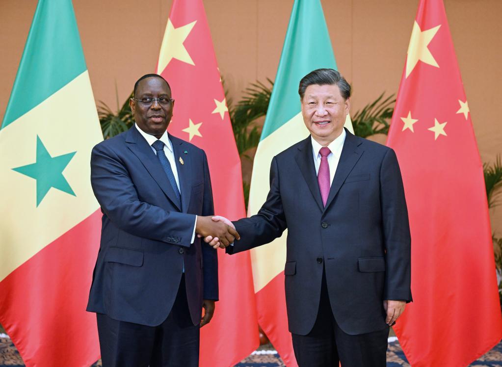 習近平主席在會見塞內加爾總統薩勒時強調,中方願同塞方繼續在發展振興道路上攜手前行,在涉及彼此主權、安全、發展利益問題上相互支持。中方願同塞方團結協作,共同維護國際公平正義和廣大發展中國家共同利益。中方積極支持非盟加入二十國集團倡議。