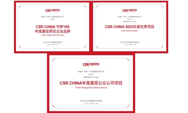 上海2022年11月18日 /美通社/ -- 生活質量服務全球領軍企業索迪斯宣佈獲評第六屆CSR中國教育榜"年度最佳責任企業品牌",其國際性非盈利機構消除飢餓(Stop Hunger)開展的公益活動榮獲"CSR CHINA SDG年度優秀項目",並通過公眾投票獲評為"CSR CHINA年度最受公眾認可項目" ,入選《2022年第六屆CSR中國教育榜優秀案例選編》。