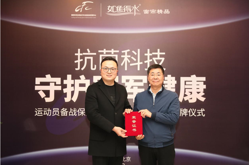 今年10月,如魚得水與體育總局自劍中心正式達成贊助合作,助⼒我國體育事業發展。在致辭環節,體育總局自劍中心副主任王峻燕表示,本次授予如魚得水守護系列產品備戰保障產品榮譽證書,既是對如魚得水為國家隊備戰保障做出積極貢獻的感謝,更是對如魚得水守護系列銀離子抗菌窗簾產品的高度認可。