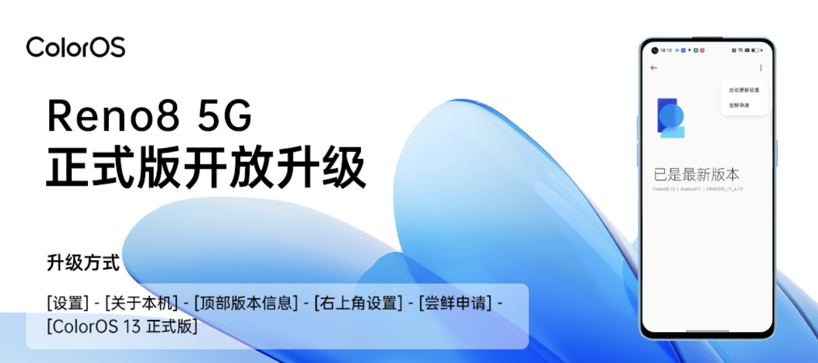 【環球網科技綜合報道】11月18日消息, ColorOS 官方日前宣佈,OPPO Reno8 5G x ColorOS 13.0 正式版開放升級。