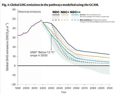美國太平洋西北國家實驗室和馬里蘭大學的科學家們此次模擬了一系列包含有雄心氣候行動的排放路徑,證明了提高短期目標,即2030年前的目標,對於限制峯值温度變化是必要的。將提高目標的行動延遲到2030年後,可能會面臨“氣温過沖”(即先超過升温目標再降回)的風險,還會減少長期氣候效益。提高短期目標還可能進一步降低非二氧化碳(如甲烷)排放,並有望加速向近零排放能源系統的過渡。