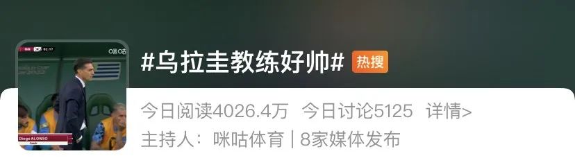 而相比0-0的比賽結果,有一人先上了熱搜,他就是47歲的烏拉圭隊主帥迭戈·阿隆索。