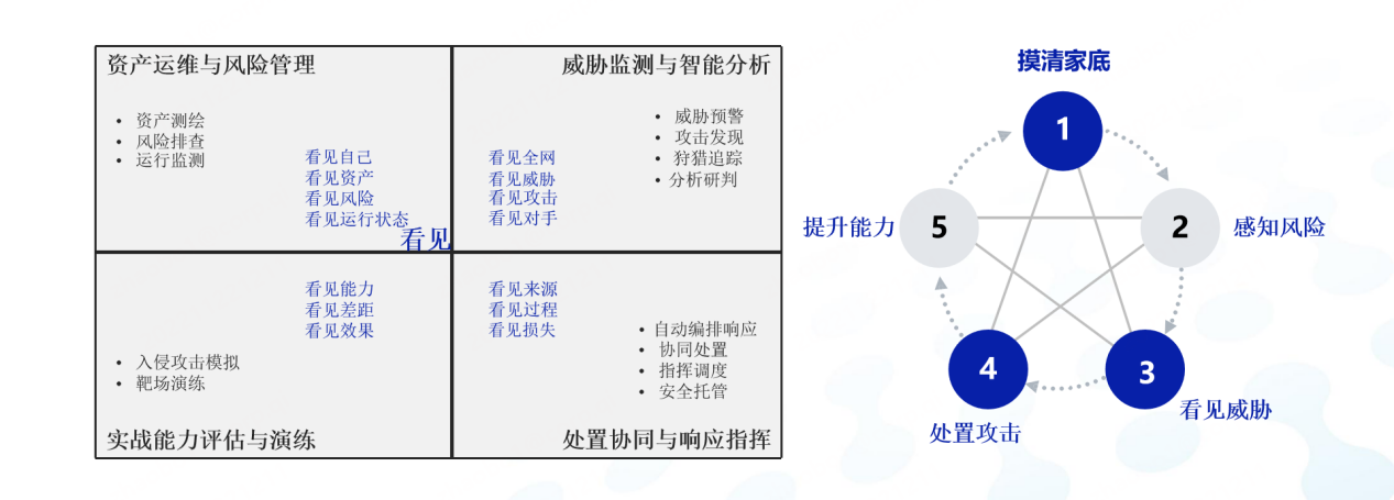 基於以上安全理念,360數字安全集團提出了“1+4”數字安全能力框架模型,通過打造電力數字安全大腦,與全網數字安全大腦在雲端進行數據對接,並提供安全服務,助力智慧電廠、數字電網、能源互聯網的體系化安全運營,幫助電網客户構建“摸清家底、感知風險、看見威脅、處置攻擊、提升能力”的五大數字安全能力,最終實現電力行業在數字時代的智慧安全能力。