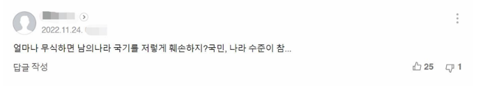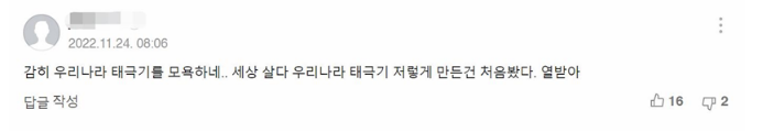相關報道一經發布,立即點燃了韓國網民的憤怒情緒。有人在相關報道下留言寫道:“竟敢侮辱我們國家的‘太極旗’!這麼亂搞我們的國旗可真是活久見。真是氣死我了!”↓