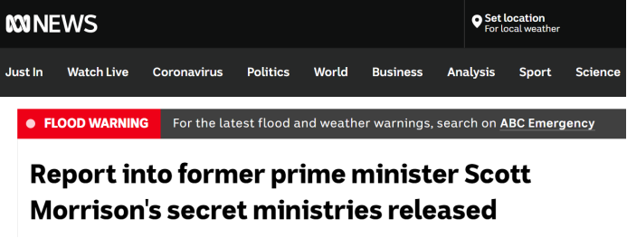 莫里森“秘密兼任多個部長職務醜聞”調查報告公佈,澳總理:不可原諒