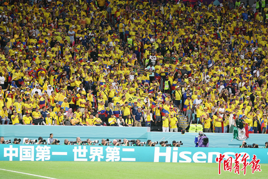 11月20日,卡塔爾海灣球場,2022卡塔爾世界盃揭幕戰上,球場邊中國企業的滾動廣告十分醒目。