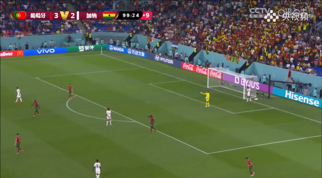 傷停補時階段,加納隊本有機會扳平比分,“大意了”的葡萄牙門將迭戈-科斯塔險些送上“巨大巨大、超級超級”低級的失誤。