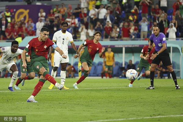 【環球網報道】北京時間11月25日,2022世界盃小組賽H組首輪比賽中葡萄牙3-2力克加納,驚險贏得開門紅。其中,葡萄牙球星C羅的點球也讓他自己成為首位連續五屆男足世界盃進球的球員。據英國廣播公司(BBC)報道,C羅賽後表示,這讓他非常自豪。