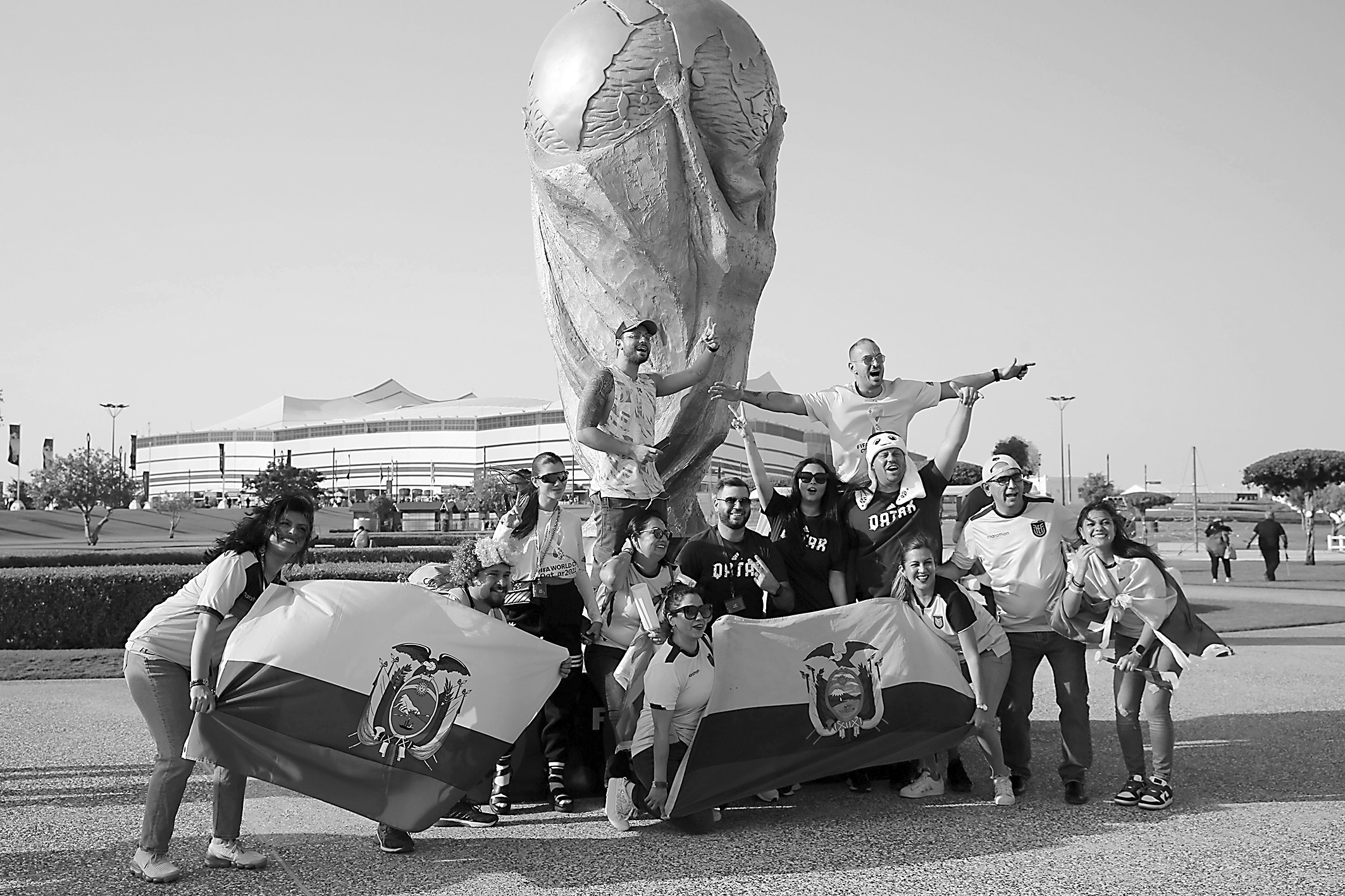 “卡塔爾世界盃來了!”筆者一進入多哈國際機場,世界盃氛圍撲面而來。與10月中旬筆者到來時相比,機場已“全面換裝”——到處懸掛着世界盃海報、設置了專門的世界盃問詢服務枱、到達廳出口矗立着大力神杯模型。驅車行駛在多哈,主幹道旁飄揚着世界盃的旗幟,不時可看到路標上醒目標註的體育場方向,路旁商店櫥窗擺出各色球衣和各國國旗。位於濱海大道的世界盃倒計時時鐘旁擠滿了熱情的球迷,哪怕深夜,球迷依然絡繹不絕,一陣陣歡呼此起彼伏。