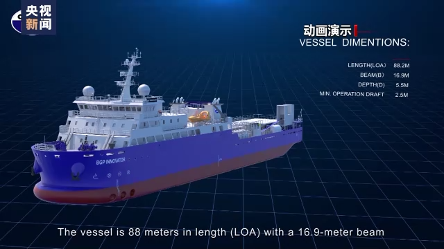 *總枱記者 楊淵:*這艘全球先進的淺水作業船是中國製造,它具備哪些技術優勢,為淺水石油勘探提供哪些先進的解決方案?讓我們上船去看一看。