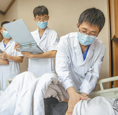 重慶中新腫瘤醫院內,醫生正在檢查患者治療情況。