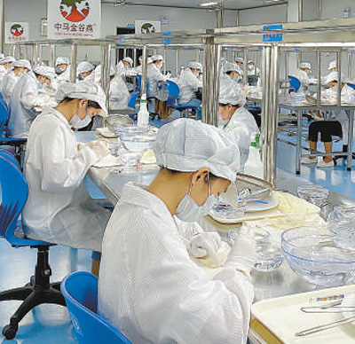 中國—馬來西亞欽州產業園中的燕窩加工企業生產線。