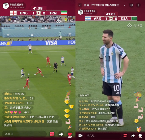 “為了給用户帶來更加多元的觀賽體驗,我們從賽事前方選取了近30路併發信號回傳,並從中挑選最為適合豎屏製作的信號源,來進行‘橫轉豎’處理。世界盃比賽場次多、賽程長、流程密集,針對足協項目的特點,我們為世界盃量身打造了豎屏賽事畫面標準,結合客户端UI設計,將視頻裁切比例定為3:4,最終輸出一個9:16的豎屏賽事畫面,讓圖像表達與賽事畫面、互動評論、賽事包裝相整合,確保準確、高效地輸送給觀眾更具沉浸感的畫面信息。”央視頻相關負責人説。
