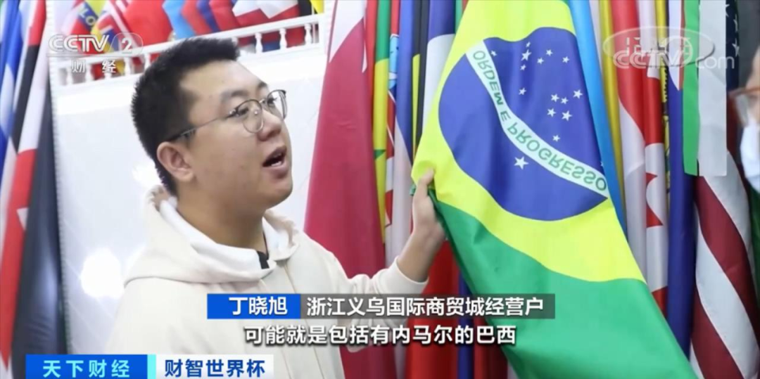 浙江義烏國際商貿城經營户 丁曉旭: 客户更傾向於有內馬爾的巴西,有梅西的阿根廷,這幾個國家相對來説熱度更高一點。