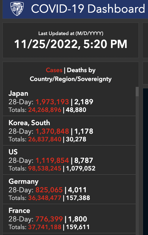 據約翰斯霍普金斯大學11月25日公佈的數據,從疫情暴發至今,超過107萬美國人死於新冠肺炎,總感染者達超過9800萬人,位列全球第一。美國疾控中心預測,由於新亞型毒株超強的傳播力,到明年年初,可能將有超過三分之一的美國人感染新冠病毒,而其中,近五分之一的感染者可能成為“長新冠”人羣。
