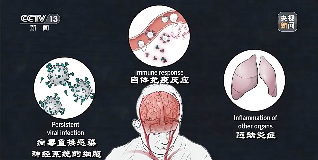 第一種是病毒直接感染神經系統的細胞。第二種是人體的“自體免疫反應”對部分大腦細胞產生作用,在這種情況下,可能出現多種不同的症狀。而一旦自體免疫細胞被激活,便很難再被關閉。第三種則可能是遠端炎症,如肺部炎症對腦細胞的刺激,引發腦細胞的長期性變化。此外,三種入侵方式也可能同時發生,還可能先後發生,但最終都會導致神經系統的異常。