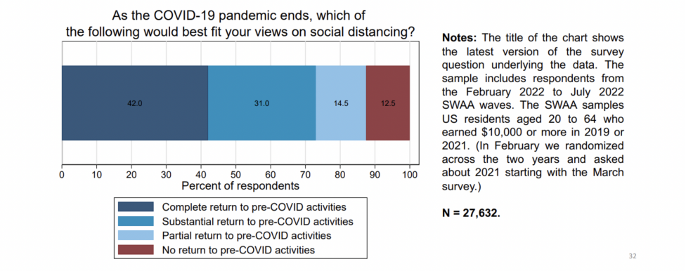 今年10月,胡佛研究所發佈“長期社交疏離”的研究報告顯示,僅有42%的受訪者表示,他們能夠完全回到疫情前的活動狀態。