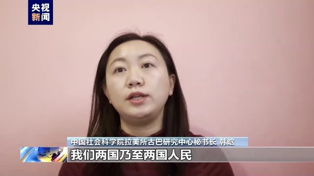 *中國社會科學院拉美所古巴研究中心秘書長 韓晗:*雙方同為發展中國家,我們兩國乃至兩國人民對國際社會秩序的發展有着近似的追求,雙方在很多領域和很多事務上提出了相關的觀點和一致性,包括反對一切霸權主義和強權政治,尤其是致力於推動改變國際多邊機制的不平等的現象。古方支持中國提出的全球發展倡議,願意同中方在倡議之友小組、77國集團等多邊機制下,加強相關的合作,推動協議走深走實。在這次會見當中(雙方)也提出了攜手共建,共同推動人類命運共同體的建設,共建中古命運共同體。那麼此外,在執政黨的建設經驗和新的國家建設方面,兩黨願意繼續加強機制化的交往,我想説的是,在此次訪問當中,雙方參與會見的級別,還有領域的廣泛性,乃至交流內容的密切和深入,都和以往相比是有了進一步的發展。