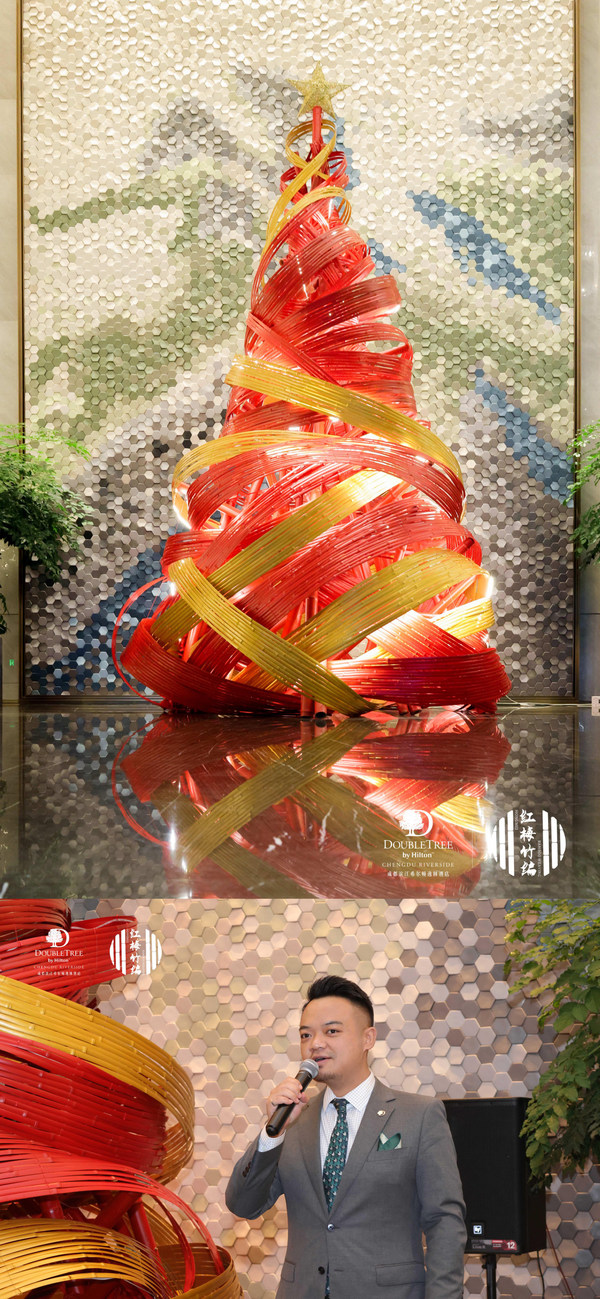 成都2022年11月28日 /美通社/ -- 2022年11月24日,成都濱江希爾頓逸林酒店舉行聖誕點燈儀式與賓客一同迎接聖誕到來。此次活動酒店特別邀請了道明紅梅竹編的非遺傳承人肖瑤女士,從竹編藝術視角親自設計並編織竹藝聖誕樹,將中國非物質文化遺產與西方傳統節日相結合。以竹為媒,演繹冬日聖誕頌歌。