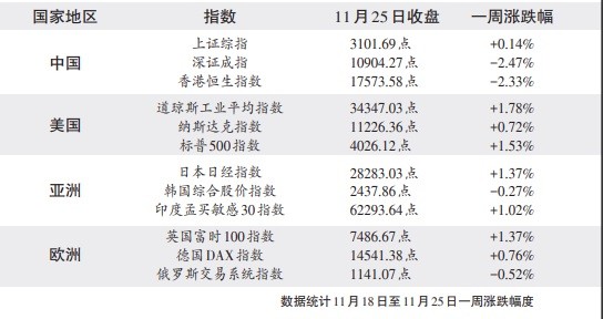 上週,全球主要股指多數出現上漲,其中越南證交所指數、美國道瓊斯工業指數漲幅居前。香港恒生指數和韓國KOSPI指數表現靠後。