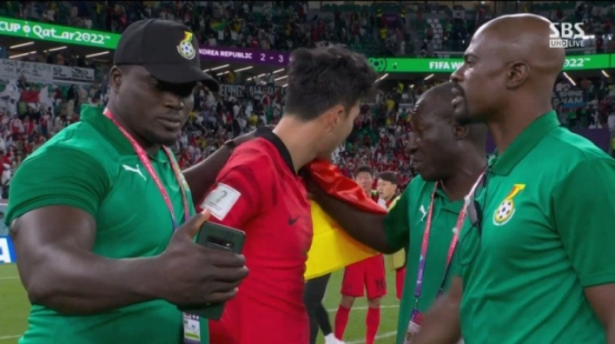 【環球網報道 記者 付嘉駿】綜合韓國《朝鮮日報》、《國民日報》29日報道,昨晚,在卡塔爾世界盃H組小組賽第二輪比賽中,韓國隊以比分2:3惜敗加納。賽後,韓國隊主力球員孫興慜頗顯遺憾,表情僵硬。就在此時,對方球隊的一名工作人員前來與其自拍合影,孫興慜見狀則立即背過身去。這一幕激怒了韓國網民,在韓國國內引發爭議,他們怒批這名加納隊的工作人員“沒有禮貌”。