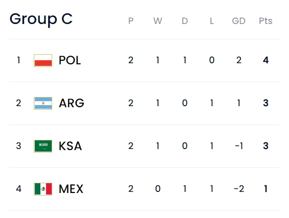形勢:波蘭平局即可晉級,阿根廷、沙特取勝可確保出線,墨西哥需要勝利並多撈淨勝球。