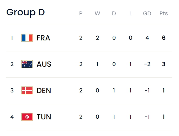形勢:澳大利亞取勝可確保晉級,丹麥和突尼斯都需要一場勝利,並看另一場比賽的結果。