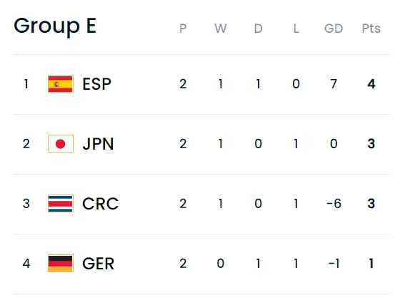 形勢:西班牙平局可出線,日本、哥斯達黎加取勝可確保晉級,德國隊即便贏球也需要看另一場比賽的結果。