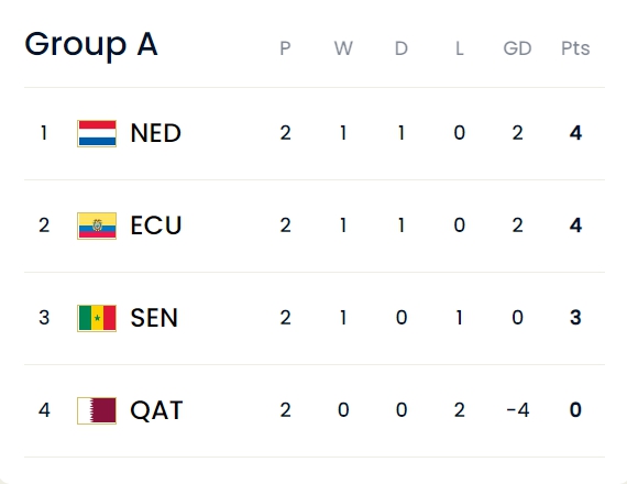 形勢:荷蘭、厄瓜多爾平局即可出線,塞內加爾雖然平局也有可能出線,但獲勝才能確保晉級。